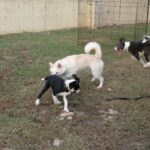 ちびっ子やほかの犬が周りにいる状況でも「マテ」ができるようになりました(写真中央)。おうちに帰ってもルールを守って過ごして、お散歩もゆっくり歩いてね。