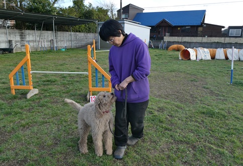 スタンダード・プードルのリンちゃん、横に付いて歩く練習中。ほかのワンちゃんと遊んで社会性を学ぶことも大事ですが、そろそろしっかりトレーニングも進めていかないといけません。集中力アップできるといいね。